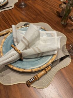 Guardanapo off white com barrado bege em linho
